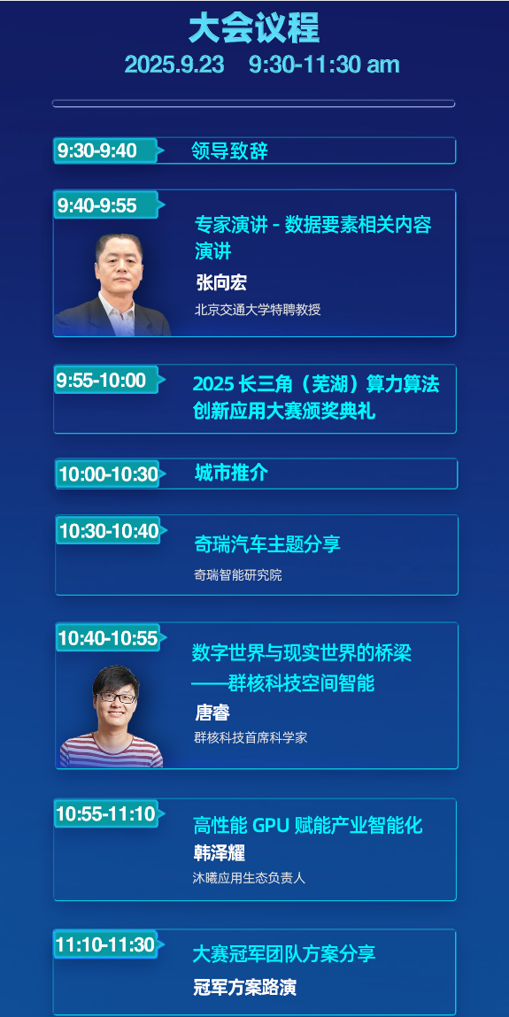 数据要素领域专家 ——张向宏、产业领军企业 —— 奇瑞汽车、美的集团、极视角科技、群核科技等代表、政策解读 —— 芜湖市人才、招商政策重点发布。