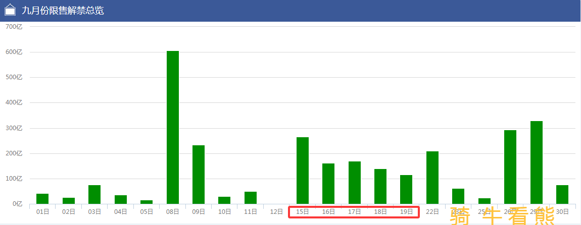 从解禁数据可以清楚地看到,9月的第3周(9月15日——9月19日)将会是本月集中解禁的一个高峰期,大家要注意“防雷”。