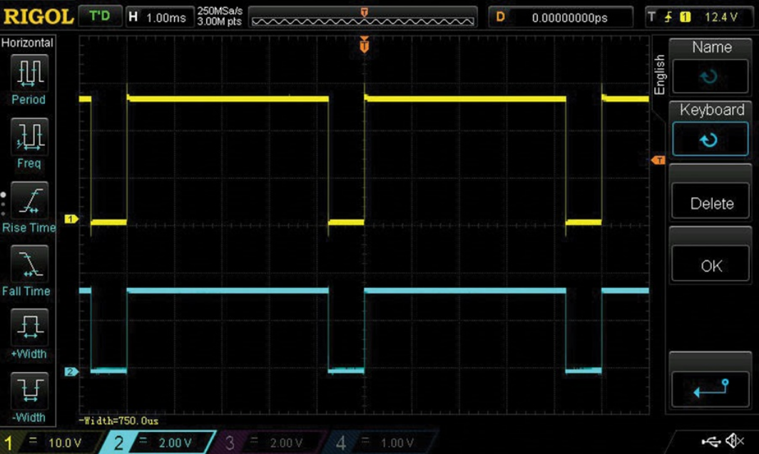 然而,负毛刺并未在LED输出端被滤除,如图5所示,750 µs下降脉冲传播到LED输出端。这与使用SPI读出数据的情况不同,后者的正毛刺和负毛刺均被成功滤除。