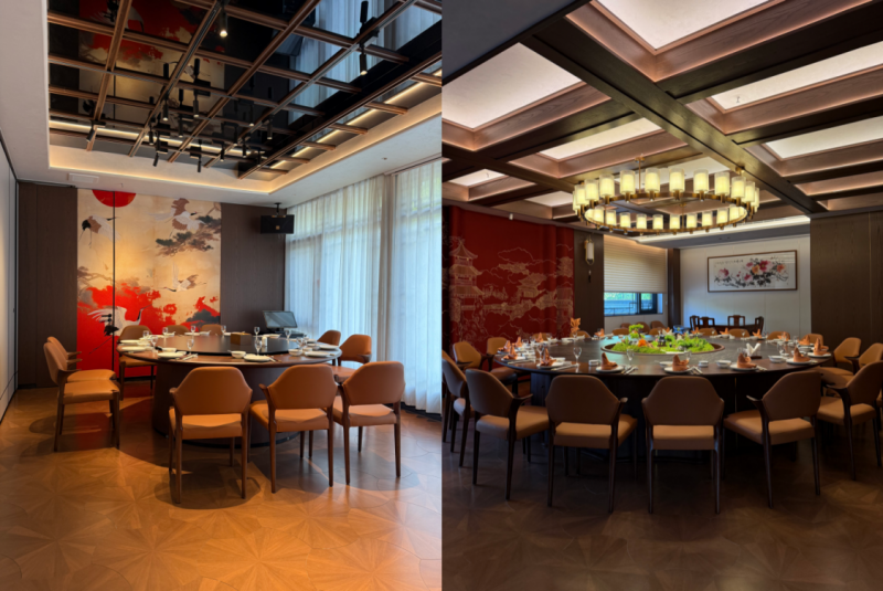 在室内灯光设计方面,百岁缘餐厅采用了多项创新技术。灯带安装确保出光均匀且不曝光;灯槽高度约25公分,通过现场调试优化灯带节点设计;采用COB灯带提升均匀度和柔和感,避免SMD灯带的颗粒感和刺眼问题。此外,餐厅还采用了无主灯设计理念,通过小开孔高光通率射灯实现空间灵活性和高级感,餐桌桌面照度控制在300lx左右,色温统一为3000K,增强菜品和环境的色彩还原度。
