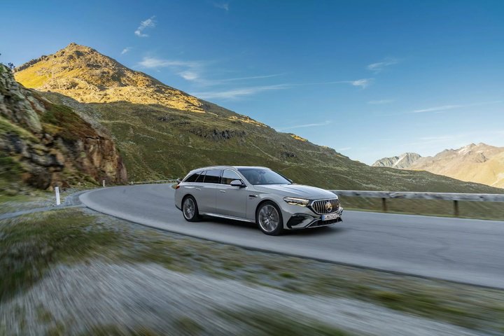 更低价格的代价是稍弱的动力,AMG E53 Hybrid wagon 采用插电混动系统,配备了一台 3.0 升涡轮增压直列 6 缸发动机,集成了九速自动变速箱和一块 28.6kWh 的电池,整套系统可输出 577 马力和 749 牛米扭矩。