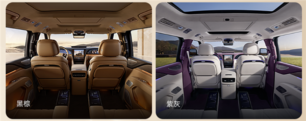 提供黑棕、紫灰两款配色,黑棕内饰灵感取自秋日庐山画卷,深沉、稳重、包容;紫灰内饰呼应“香炉紫烟”的典雅格调,宁静、雅致、和谐。