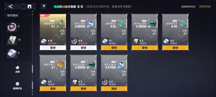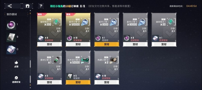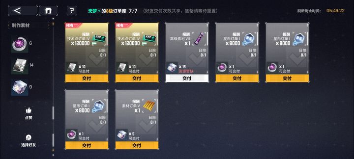 原料交易所在完成好友订单时,既不会给予好友材料,也不会影响好友的完成情况。