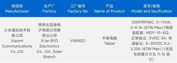 快科技9月13日消息,小米一款型号为“25091RP04C”的新平板跑分曝光,预计是小米平板8系列,将会在小米16系列发布会上同台登场。