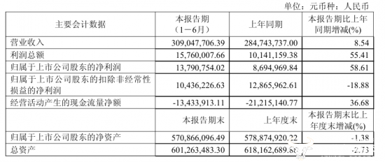 据安记食品2024年年报,公司去年营业收入为6.06亿元,同比微降4.06%,归母净利润为3833.35万元,同比增长23.29%,出现增利不增收的情况。而今年上半年,公司实现营业收入3.09亿元,同比增长8.54%,净利润为1379.08万元,相较于去年同期大幅增长58.61%。