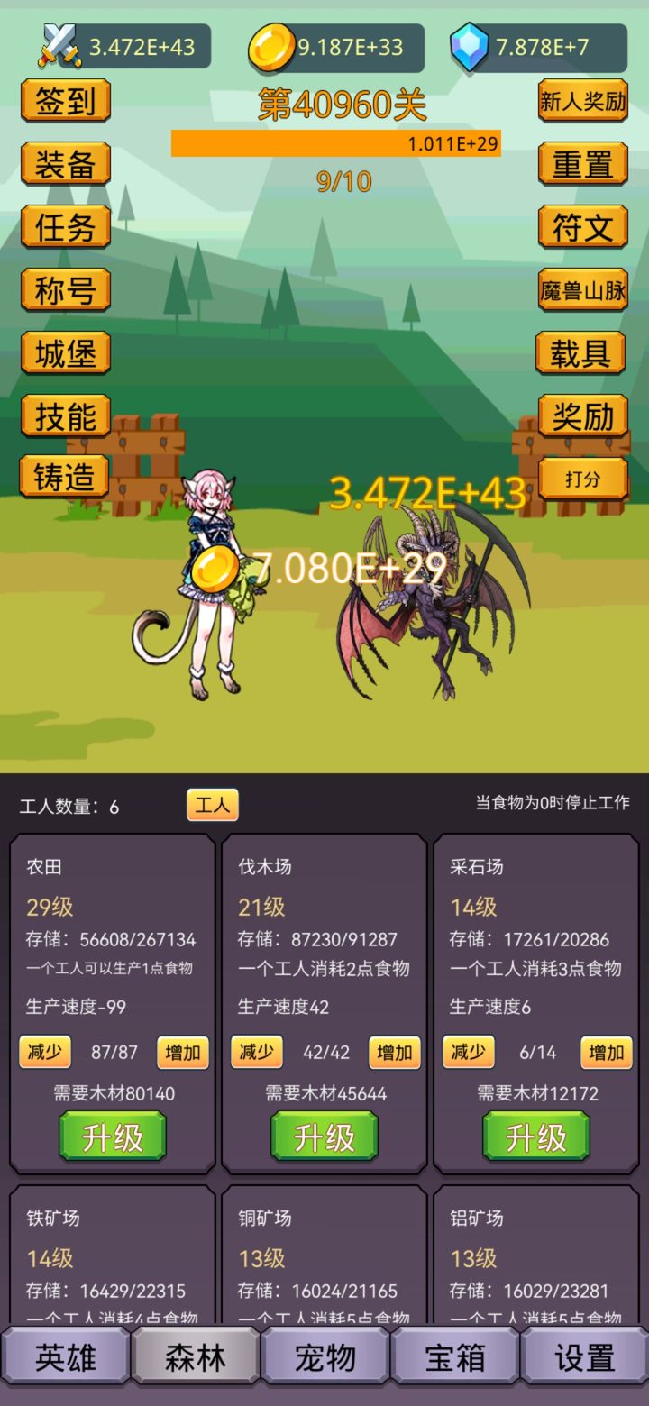 宠物升到高阶后基本不会卡关,日常主要任务包括推进关卡、升级农田、提升城堡等级和技能。若未卡关,每天重置一关即可;一旦卡关,可重置拉满以突破难关。