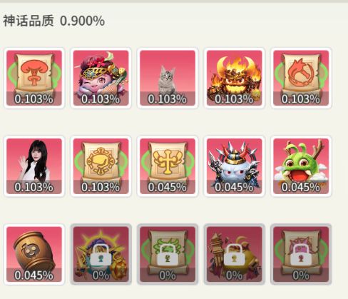 红卡卡池中,某角色抽取概率为0.1,另一角色概率为0.045。