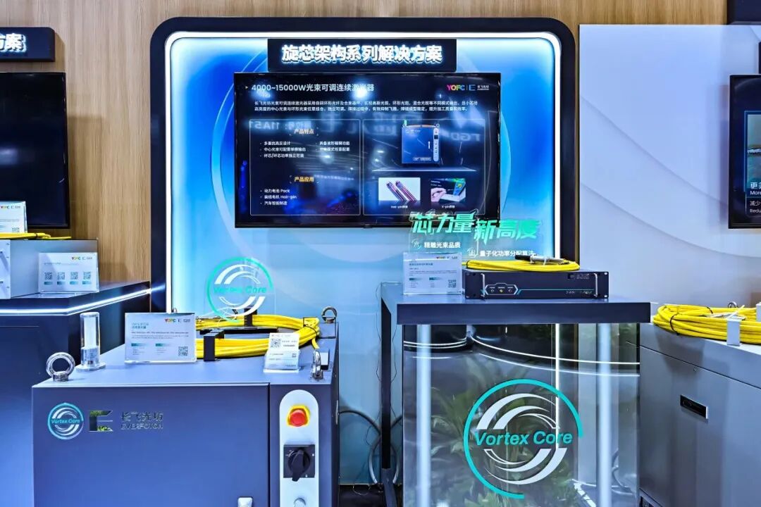 长飞今年多元化业务的另一大亮点,当属工业激光。长飞此前成立了光纤激光器子公司长飞光坊,今年完成对奔腾激光的战略收购后,实现了从特种光纤材料、光纤激光器到激光智能装备的全产业链布局。在展台上,长飞还推出了全新旋芯架构激光解决方案。