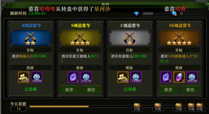游戏中设有悬赏系统和每日循环任务,这两个系统能够提供大量经验和丰富奖励。悬赏任务根据难度不同分为多个星级,星级越高,奖励越丰厚。这些任务通常包括击败敌人、强化装备等相对简单的操作。不过每天只能完成10次悬赏任务,因此需要合理安排和选择任务类型,以获取更多高星级任务和对应奖励。