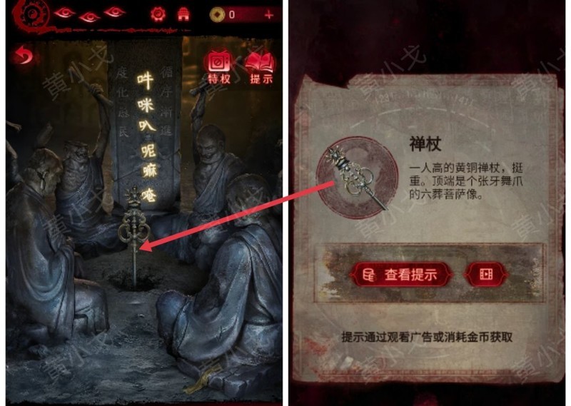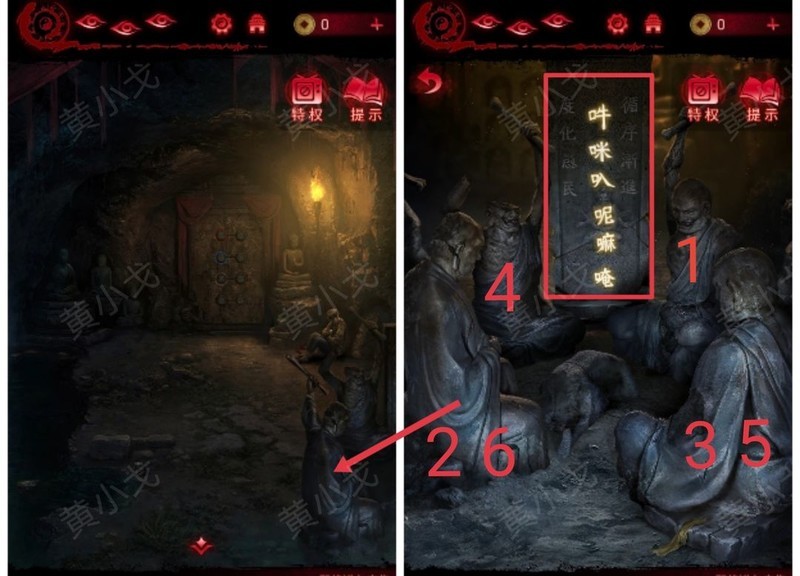 (山洞外)点击石像,按照石碑提示顺序哞咪叭嘛唵依次点击