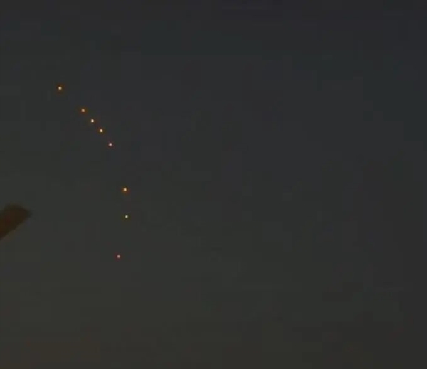 网友发布的视频中,可以看到两排飞行物均闪烁着红灯,每排约有八个光点,静止悬停于空中,没有移动。