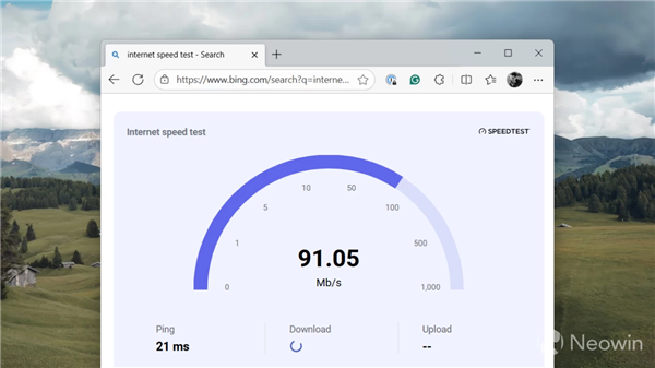 不过,这个网速测试并非一个原生应用,也不是设置应用中内置的功能,这个新按钮本质上是一个通往Bing及其网速测量工具的快捷方式。