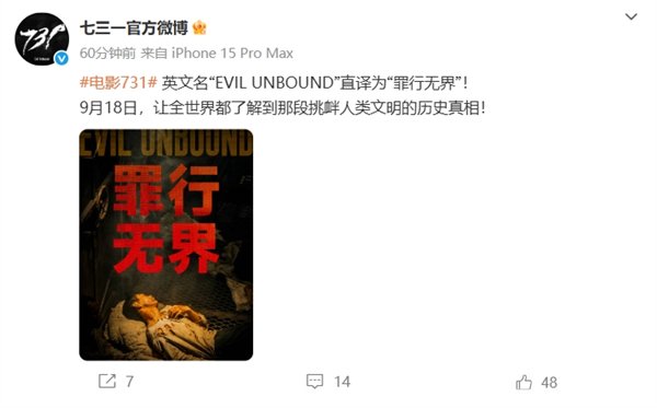 今天,《731》片方发布全球上映海报。据悉,该片英文名“EVIL UNBOUND”直译为“罪行无界”。