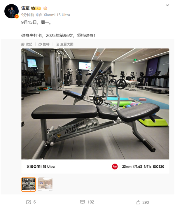 快科技9月15日消息,今天一早,雷军通过社交平台分享了自己的健身动态。