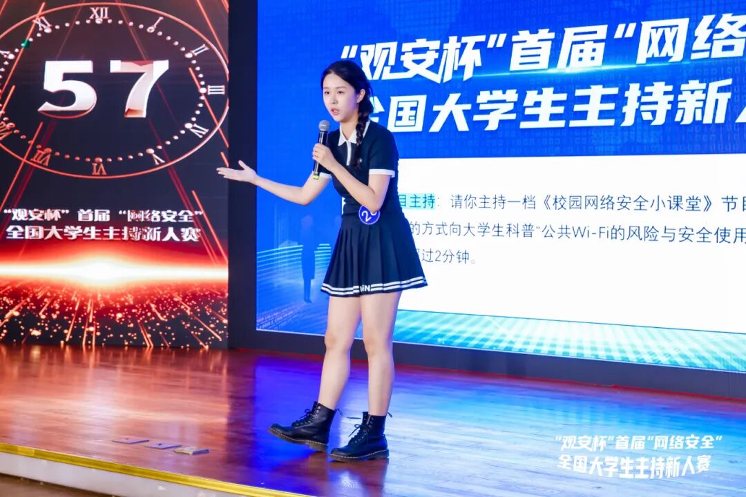 决赛延续了复赛层层进阶的竞技节奏,精心设置了主题讲述、模拟主持、现场演讲3大环节,全方位考验选手的网络安全知识储备、主持综合素养与临场应变能力。决赛现场,气氛紧张而又热烈。选手们用话筒丈量时代,用声音传递力量。一段段精彩的讲述、一句句平实有力的话语,将赛事氛围一次次推向高潮。这里,不仅是决赛的竞技舞台,更是新时代网络安全宣传的“生动课堂”。