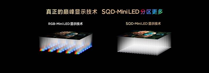 SQD-Mini LED技术的优势不止于色彩,在控光、亮度等维度同样遥遥领先。
