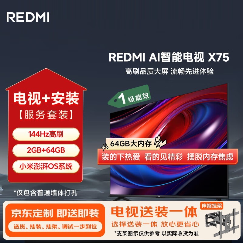 小米REDMI X75电视8折,3248元带回家