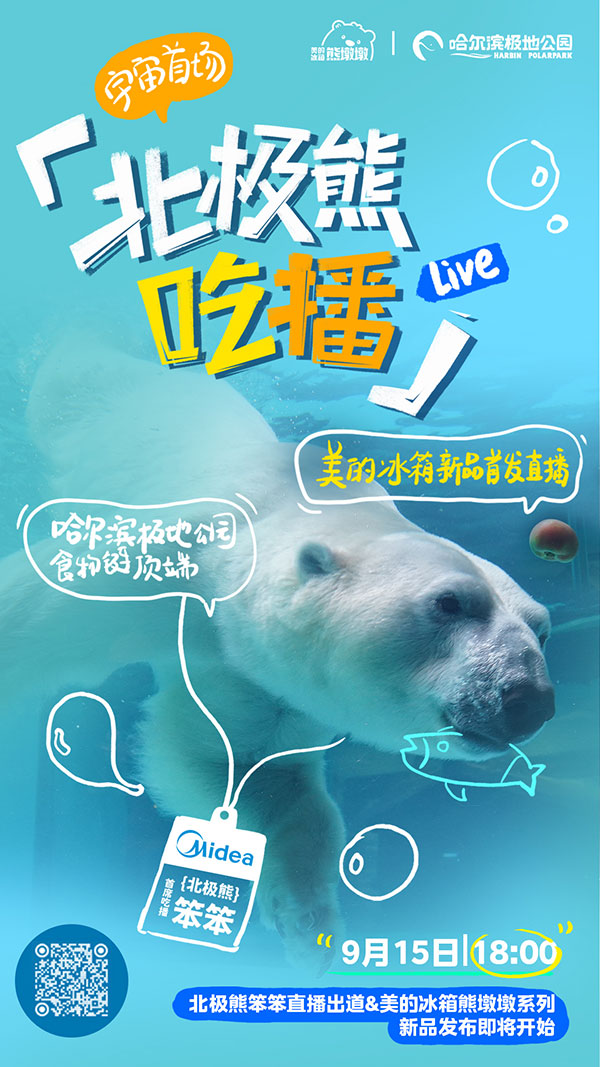 当冰箱直播撞上北极熊 “吃播”,会迸发怎样颠覆想象的新奇体验?9月15日18点,美的冰箱这场“破圈”直播,直接让全网目光聚焦北极圈 —— 顶流“冻龄爱豆” 北极熊笨笨惊喜空降,与美的冰箱市场总监史鑫、家电知名UP主迷瞪组成“跨物种豪华天团”,共同见证美的冰箱熊墩墩系列的“高光出道时刻”。
