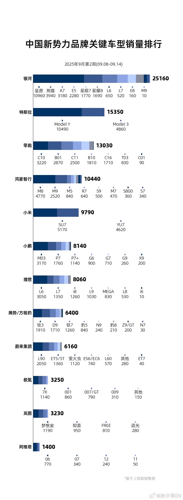 快科技9月16日消息,每到周二就是周交付量更新的时候,一起来看上周(9月8日-14日)的具体表现。