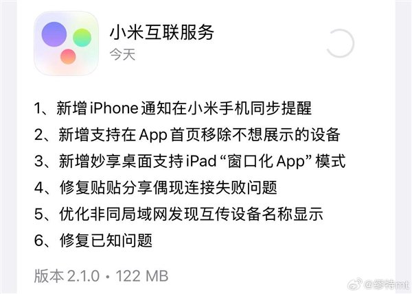 今天小米互联服务的iOS 2.1版本就正式上线,新增了iPhone通知在小米手机同步提醒的功能,让双持党更方便,可以在一个设备上查看两个生态的消息。
