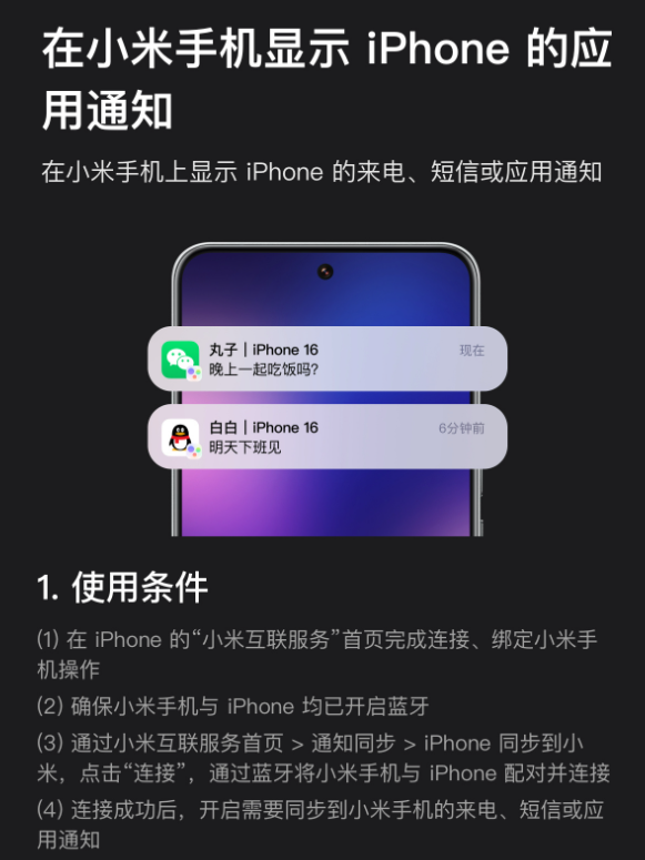 1、新增iPhone通知在小米手机同步提醒