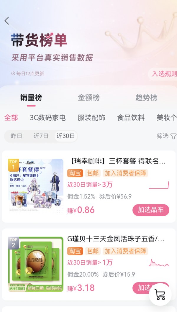 为服务品牌“以品选人”的需求,B站在双11蓄水期上线达人种草榜单和商品榜单。其中,商品榜单以销量、趋势、金额三大维度分别统计。实际上,在UP主商业服务“悬赏带货”侧,B站也上线了相同的榜单,且按类目统计,供UP主进行选品参考。
