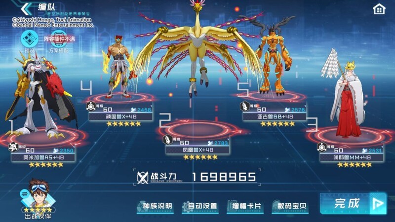 推荐PVE组合:奥米加兽AS、凤凰兽X、顽固兽X、咲兽MM与亚古兽BB搭配。