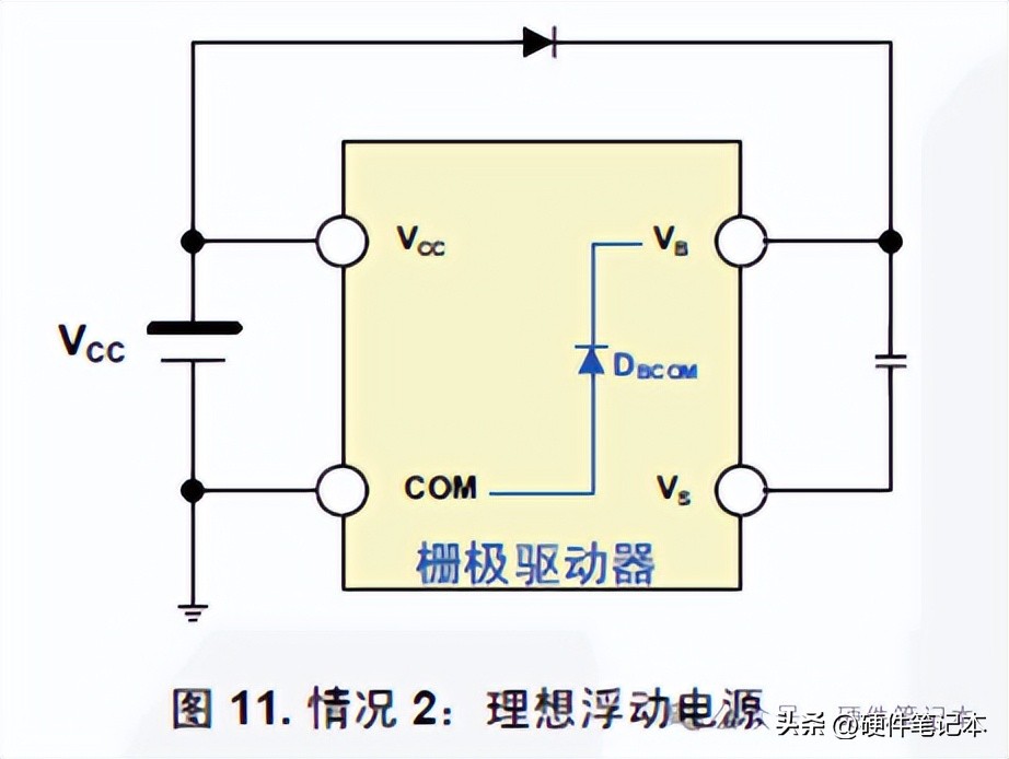 查阅Fairchild公司关于高压浮驱芯片的用户手册,在以下两个情况下,芯片内部寄生二极管D_BS或D_BCOM前向或反向导通,会导致寄生SCR闭锁,造成输出异常。