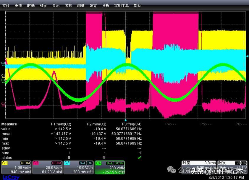 这个异常的高电平现象总是出现在交流输入的正半波的最高值,并且只出现一次,起机运行后一直不会出现这个现象。