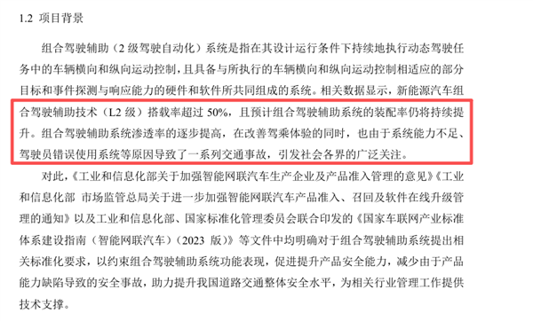 据悉,这一标准填补了我国组合驾驶辅助系统产品安全基线空白,将为行业准入、质量监督和事后追溯提供关键技术依据,有助于全面提升产品安全水平,切实保障人民群众生命财产安全。