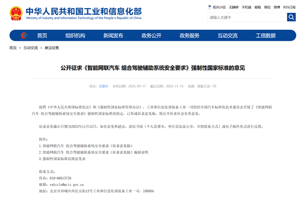 快科技9月17日消息,今日,工信部对《智能网联汽车 组合驾驶辅助系统安全要求》强制性国家标准公开征求意见,标准针对单车道、多车道、领航辅助等不同功能设置全方位安全技术要求。