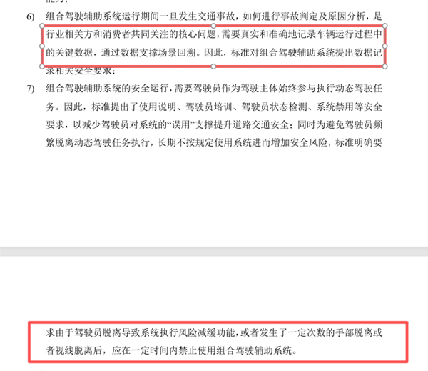 据了解,组合驾驶辅助系统运行期间一旦发生交通事故,如何进行事故判定及原因分析,是行业相关方和消费者共同关注的核心问题,需要真实和准确地记录车辆运行过程中的关键数据,通过数据支撑场景回溯。因此,标准对组合驾驶辅助系统提出数据记录相关安全要求。
