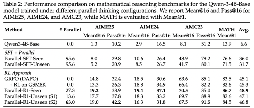 自从 Google Gemini 将数学奥赛的成功部分归功于「并行思维」后,如何让大模型掌握这种并行探索多种推理路径的能力,成为了学界关注的焦点。