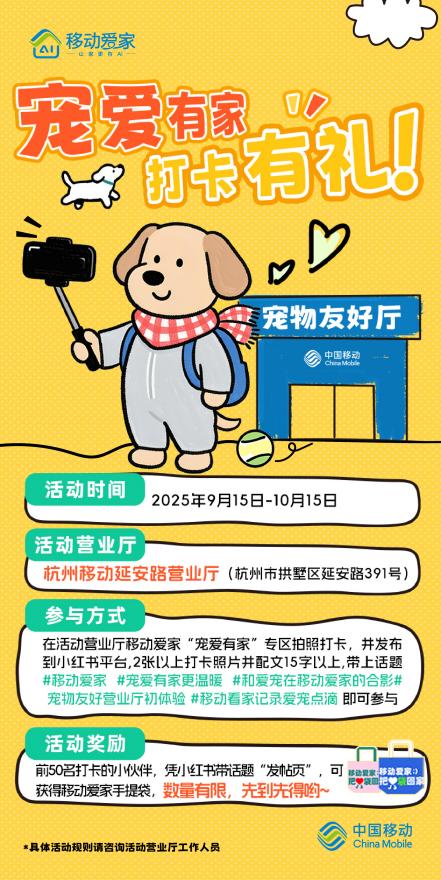 中国移动工作人员表示,希望通过“宠物友好”这一特色服务,打破传统营业厅印象,把“一面墙、一块空地”转变为具有情感温度的服务触点。同时小角落的改造,也体现了移动爱家关爱用户的理念,有AI的智慧家不仅仅是通过千兆宽带打造的智慧家,通过移动看家守护的安全家,更是将“家”延伸到宠物家人的温暖家。