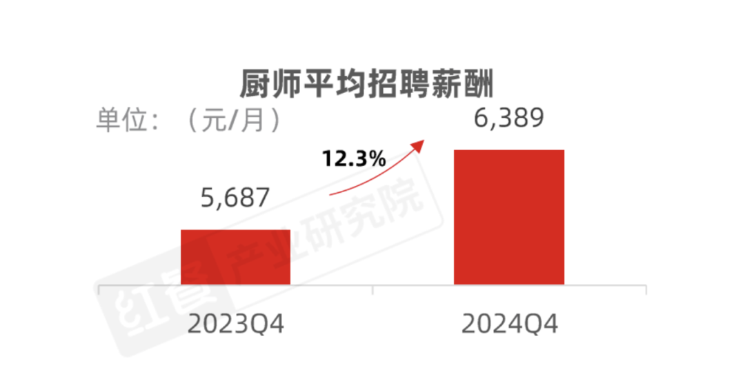 最新的白皮书数据显示,2024年第四季度,厨师招聘的薪酬是6389元,这还是上涨后的薪资。