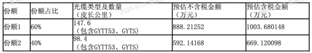 公告显示,本项目采购2025年至2026年24芯片-132芯普缆+两芯空芯的混合光缆及辅材,预估数量为246皮长公里。