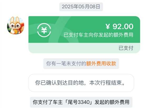 最后一个司机虽然解释前面 2 单取消的原因,但也要求 Star 多付 20 元。要是搁真顺风车主,也不存在返程费了吧?