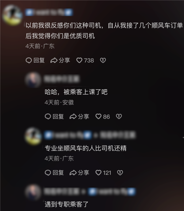 还有人说本来很反感他们这种,但在自己开过几次顺风车后,现在觉得他们是优质司机。