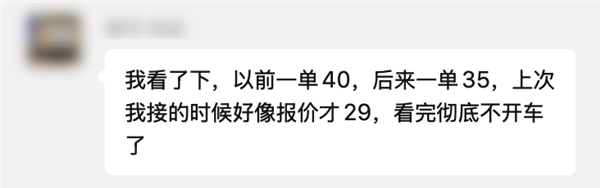 以前一单40,后来一单35,上次接报价才29。他看完彻底不开车了,直接骑摩托上班。