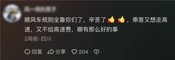 差评君有个喜欢开顺风车的同事看到后,也说是好事,感谢他们教育乘客,让他们愿意交高速费。