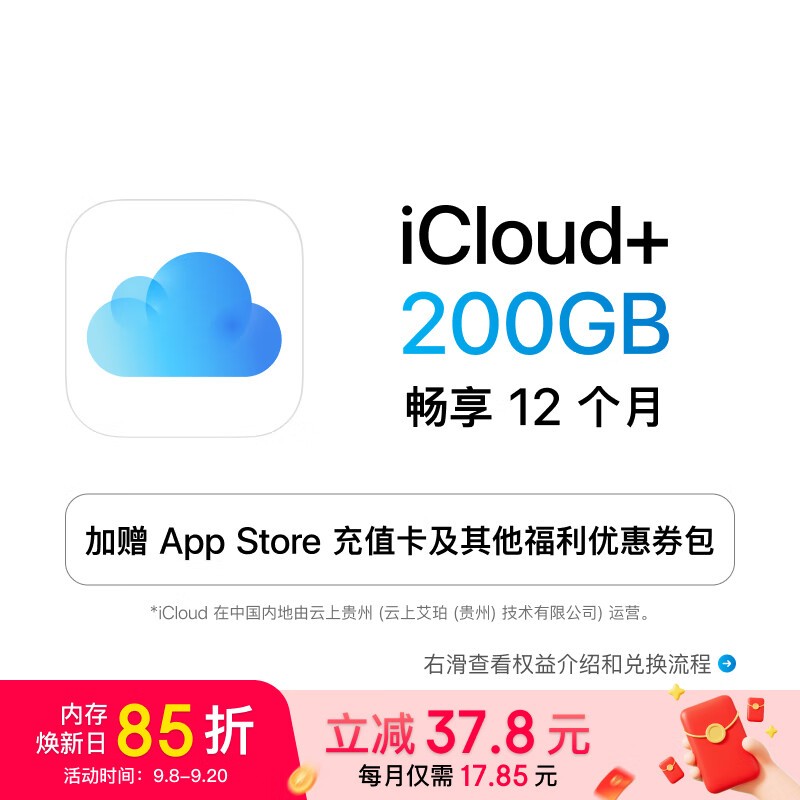 苹果iCloud+ 200GB 12个月权益包限时优惠