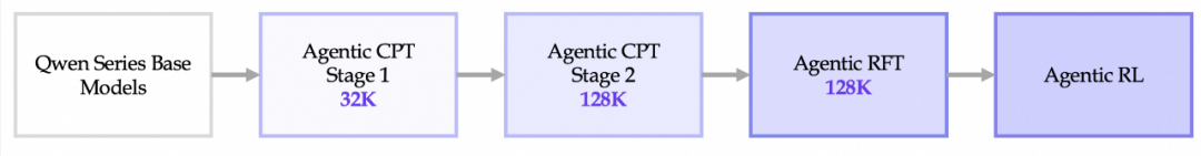 通义 DeepResearch 团队对 Agent model 训练流程进行革新!从 Agentic CPT (contine pre-training) 到 RFT (rejected fine-tuning) 再到 Agentic RL (reinforment learning),打通整个链路,引领新时代下 Agent model 训练的新范式。