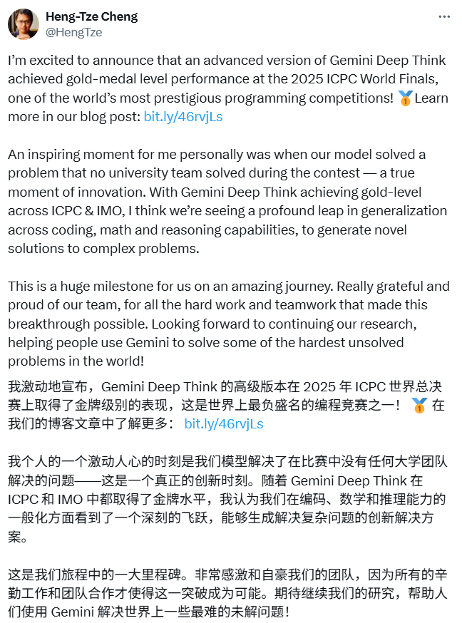 就在刚刚,OpenAI 和 Gemini 都声称达到了 ICPC 金牌水平。