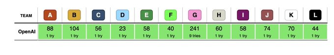其中问题 G,OpenAI 尝试 9 次后成功解决,该问题也是 DeepMind 未能解决的两道难题之一。作为参考,解题速度最快的人类选手也耗时 270 分钟(竞赛总时长 300 分钟)。