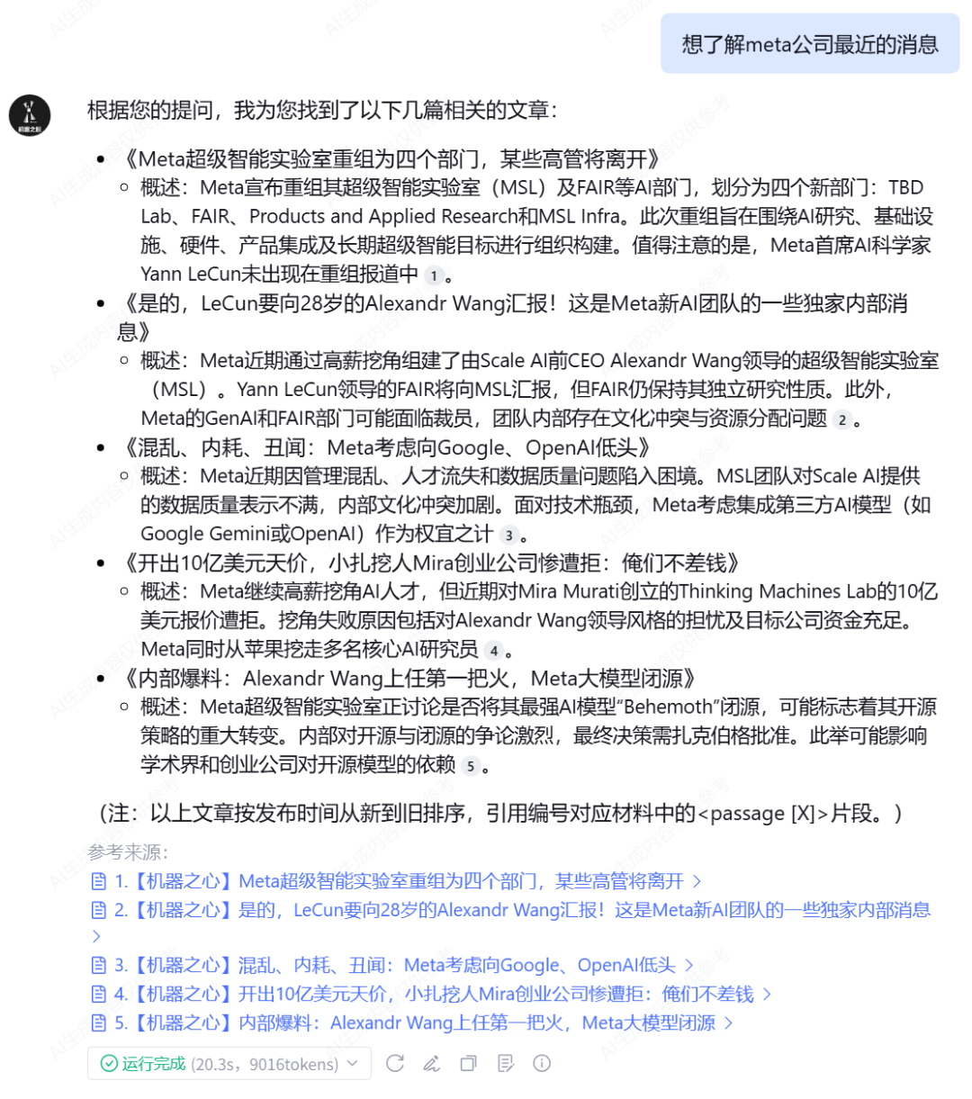 基于此,我们构建了一个最基础也最实用的功能:文章推荐小助手。你只需要告诉它你的需求,它就会立刻从知识库中筛选、总结,并精准推荐最相关的几篇文章给你。