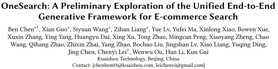 论文标题:《OneSearch: A Preliminary Exploration of the Unified End-to-End Generative Framework for E-commerce Search》