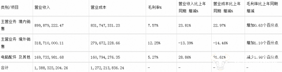 从财务表现来看,根据雷神科技2025年上半年财报,公司实现营业收入13.88亿元,同比增长13.19%;归母净利润0.14亿元,同比上升69.31%,整体业绩保持增长。然而进一步分析其收入结构可发现,主营业务呈现“内增外降”的态势:其中境内收入约9亿元,同比增长23.81%;境外收入则为3.19亿元,同比下降13.39%。