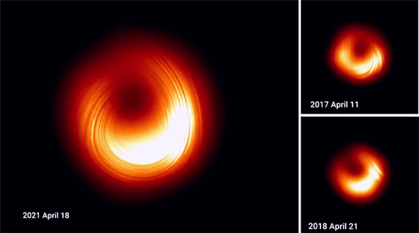 等离子体偏振方向发生变化的原因尚不清楚,但无疑表明M87*黑洞的周边环境正处于持续的动荡中,可能还会影响其吞噬物质的方式。