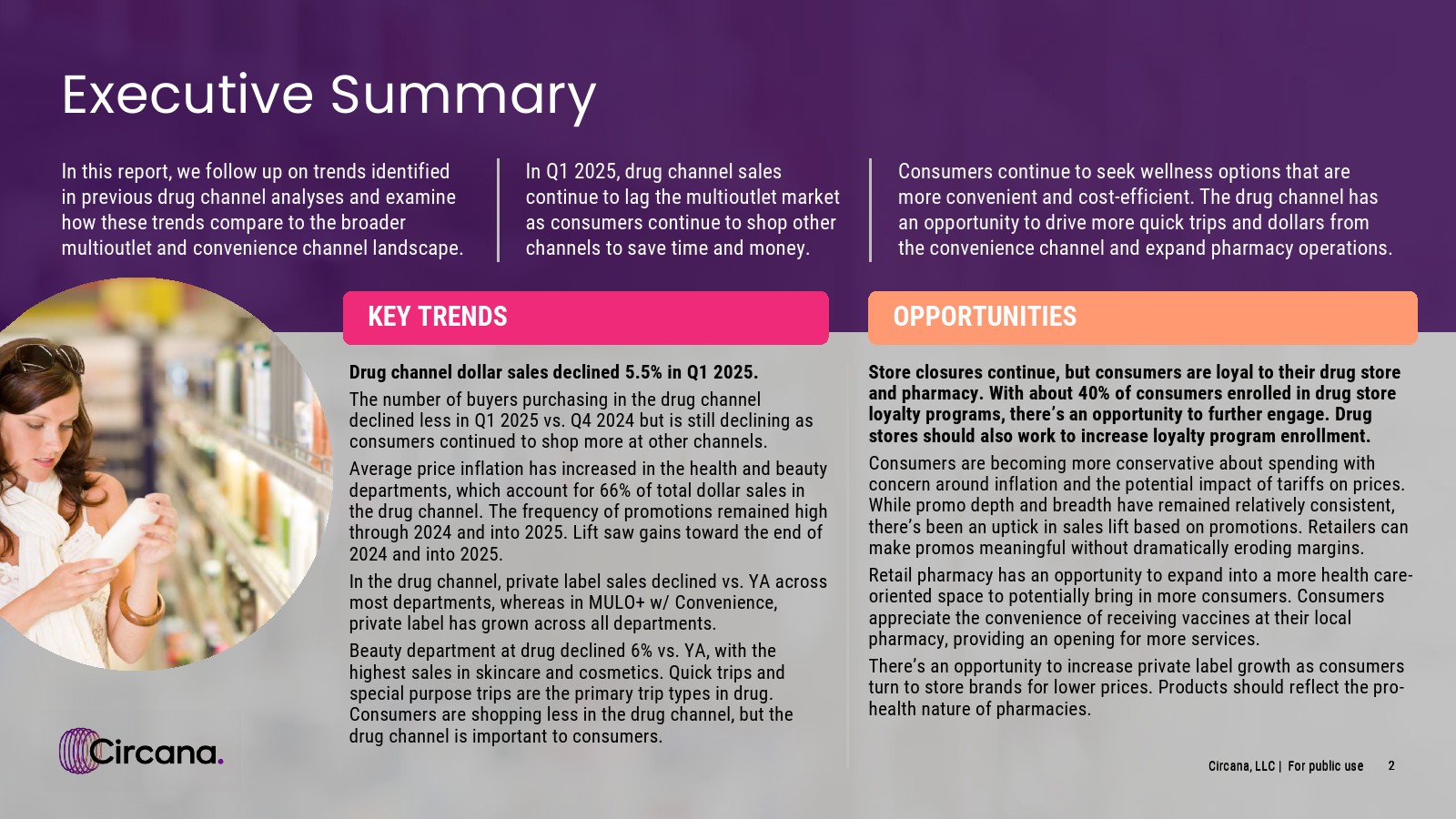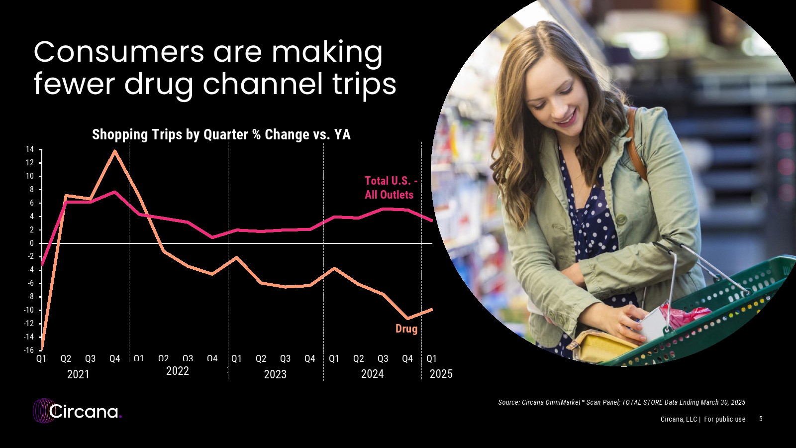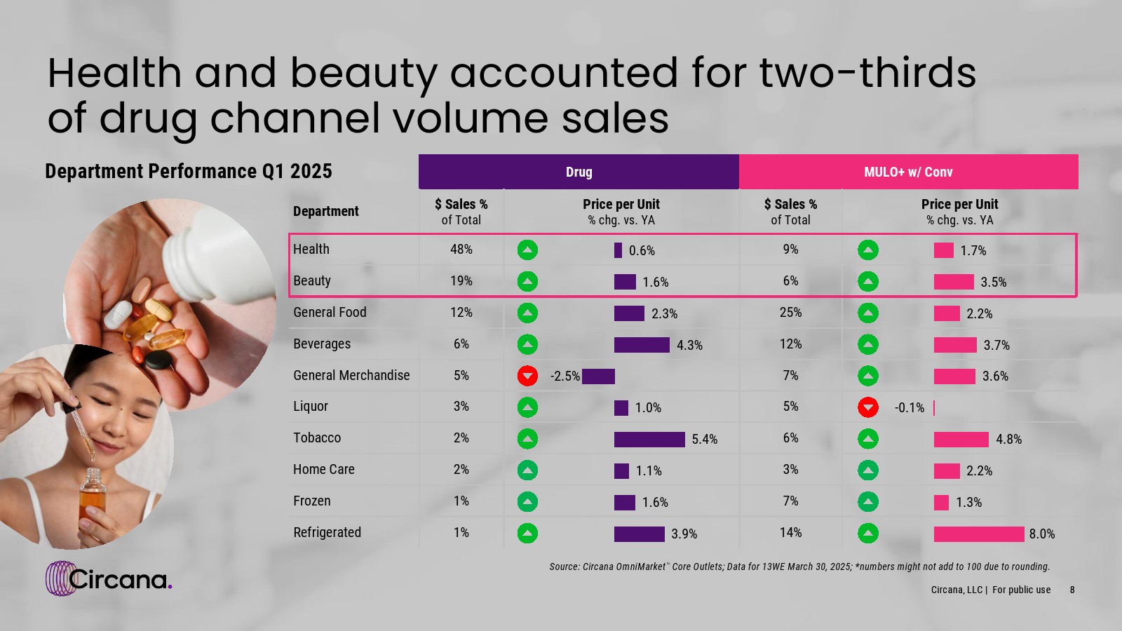 2025年第一季度,药品渠道销售额仍落后于多渠道市场,因为消费者继续选择其他渠道以节省时间和金钱。