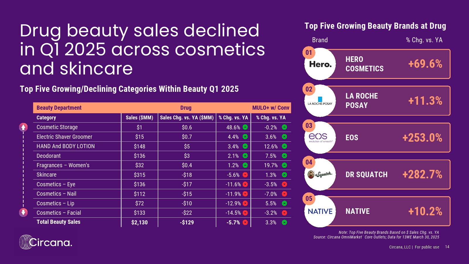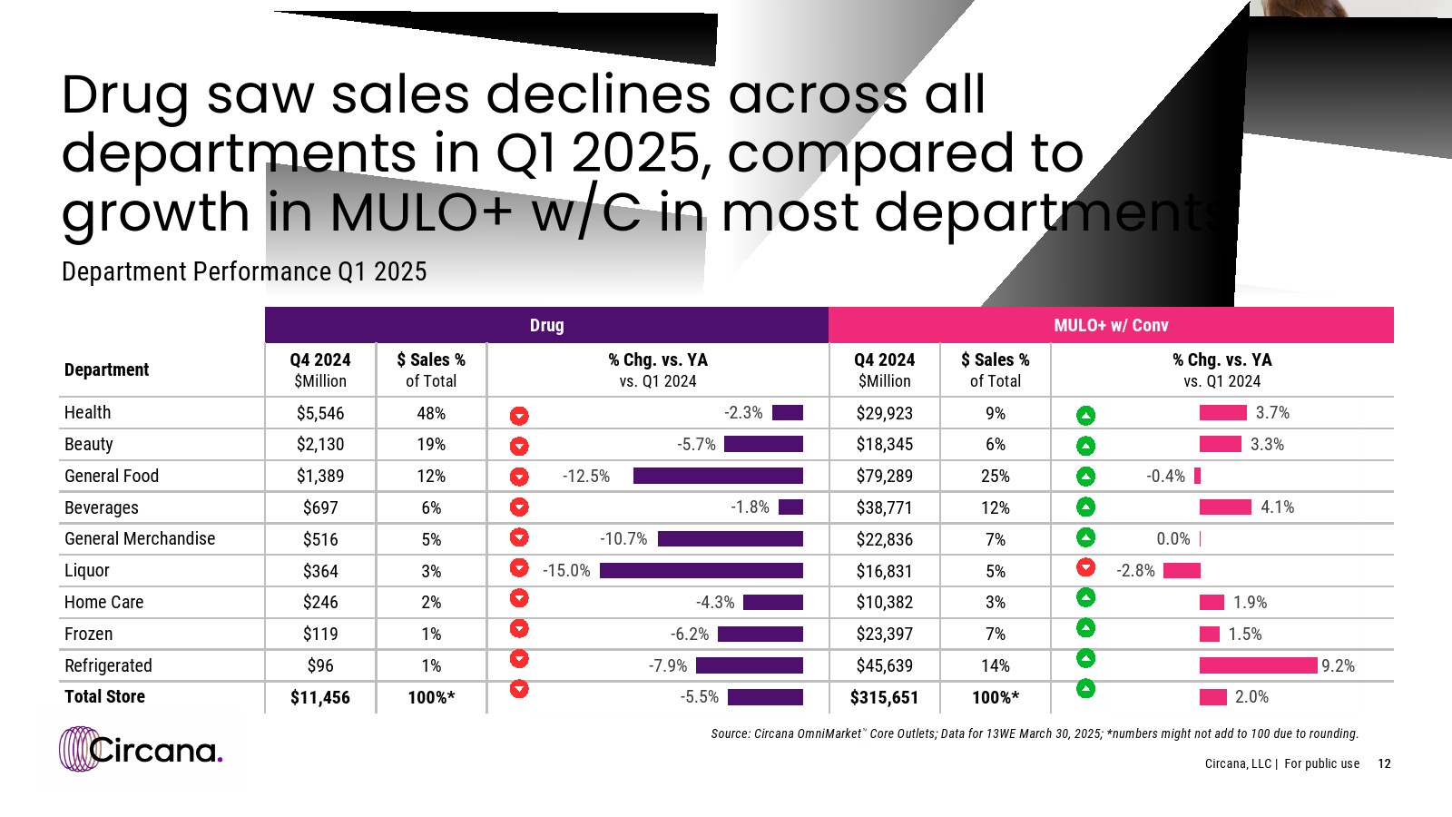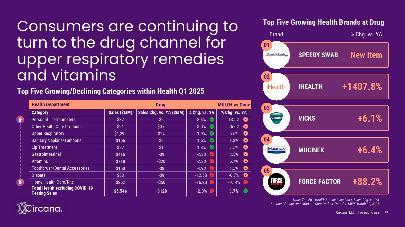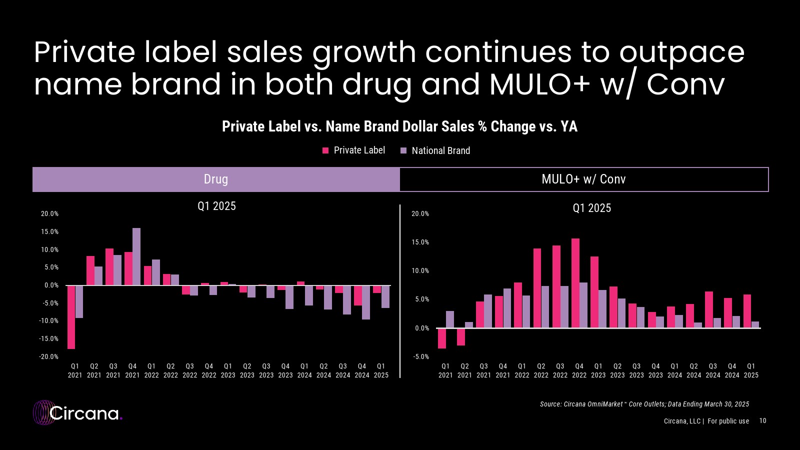 2025年第一季度,药品渠道销售额仍落后于多渠道市场,因为消费者继续选择其他渠道以节省时间和金钱。
